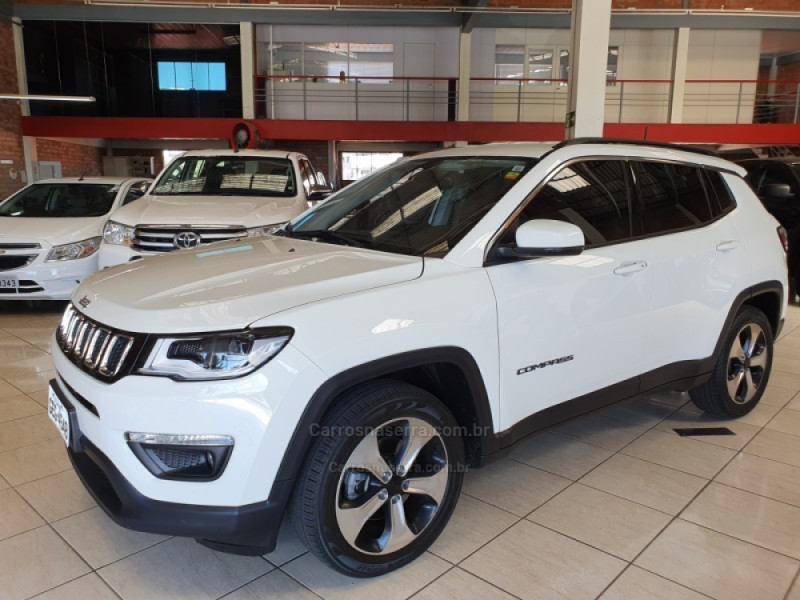 DADOS DO VEÍCULO Número: 1682707 Categoria: CAMIONETES Condição: USADO Marca: JEEP Modelo: COMPASS 2.0 16V FLEX LONGITUDE AUTOMÁTICO Ano: 2017 / 2018 Cor: Branco Combustível: Álcool+Gasolina Câmbio: Automático Portas: 4 portas Quilometragem: 38.000 KM Placa: GEG***_