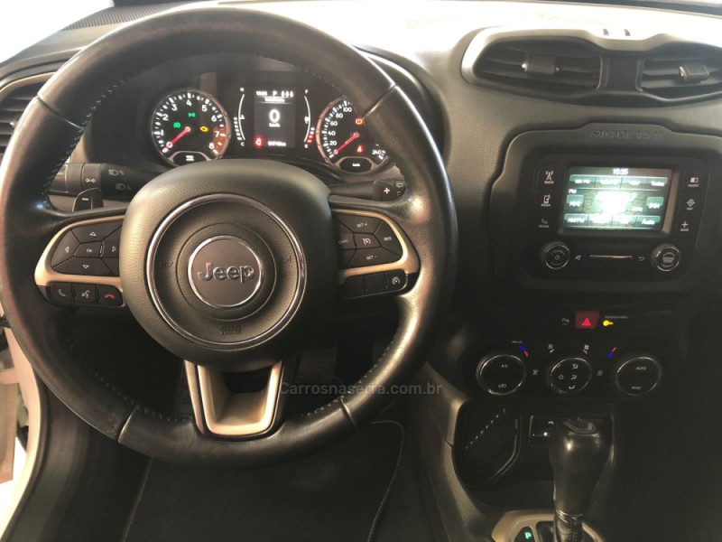 DADOS DO VEÍCULO Número: 1720694 Categoria: CARROS Condição: USADO Marca: JEEP Modelo: RENEGADE 1.8 16V FLEX LONGITUDE 4P AUTOMÁTICO Ano: 2016 / 2016 Cor: Branco Combustível: Gasolina Câmbio: Automático Portas: 4 portas Quilometragem: Não informado Placa: ******
